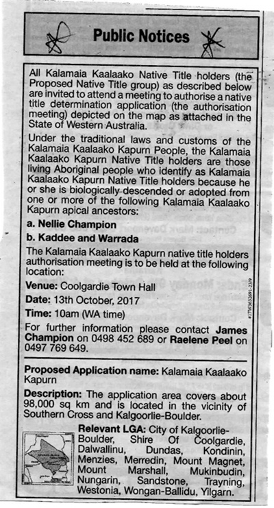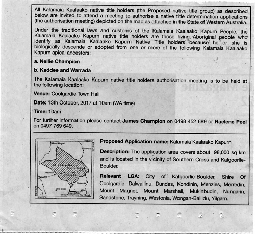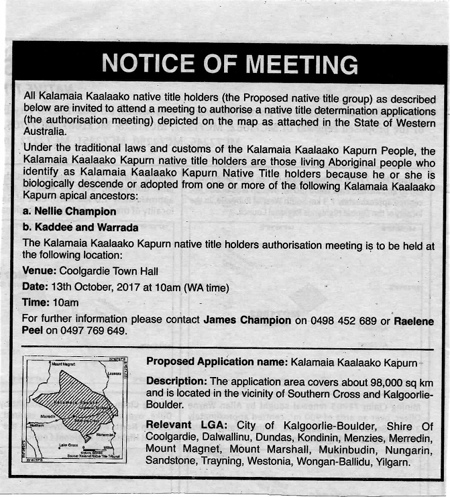 Notice of Meeting for Native Title Claim by Kalamaia Kapurn People