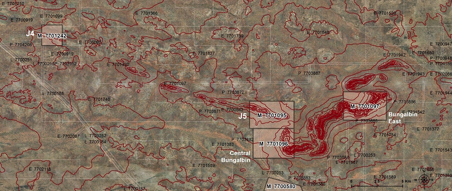 - M77/1097 (status: pending): located in the centre of the range, sometimes referred to as Bungalbin East.