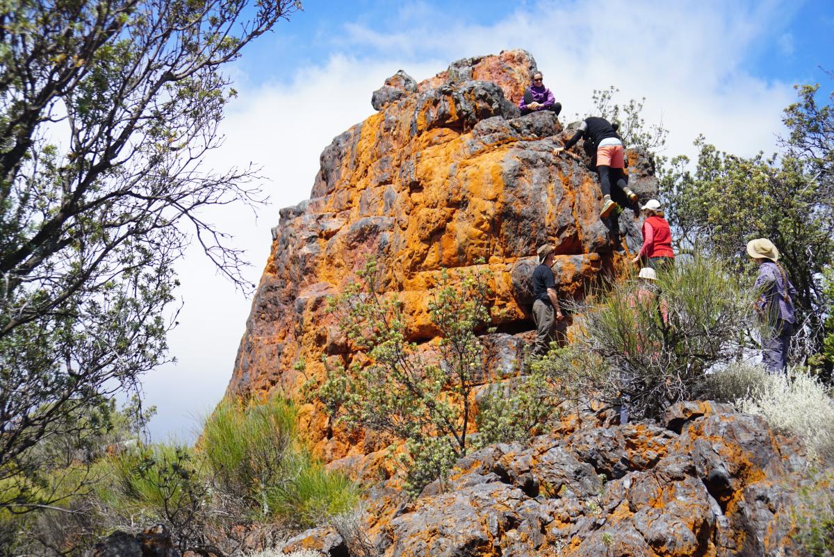The J5 monolith can be optionally ascended with care from its western spine. However, remember this is a simple rock climb and hands will definitely need to come out of pockets! Its only a short walk back to the start from here, albeit in parts down through steep and rocky terrain.